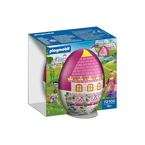 Elk kleurrijk ei zit vol verrassingen: twee figuren, allerlei accessoires en een kleine speelscène die direct uit de twee eihelften kan worden samengesteld. Uitpakken, opbouwen, spelen maar! Paasmagie in de kasteeltuin: de grote en kleine prinses zoeken tussen een prachtige kasteeltoren en een kabbelende fontein naar kleurrijke paaseieren – en ontdekken daarbij twee schattige paashazen. Na Pasen kan het ei weer in elkaar worden gezet en als spaarpot worden gebruikt – perfect om te sparen voor het volgende avontuur!