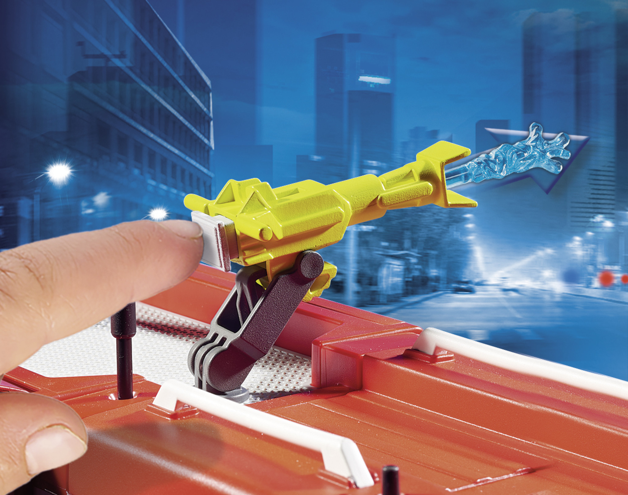 Op afstand bestuurbaar voertuig met een werkend waterkanon, licht en geluid (2 x 1,5 V AAA-batterijen vereist). Met veel opbergruimte voor de uitgebreide apparatuur. Maximaal vier figuren kunnen worden ondergebracht in de bestuurderscabine. Afmetingen: