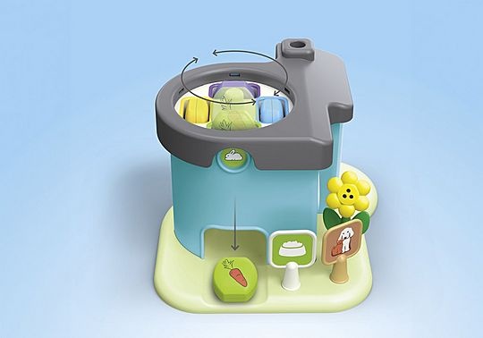 Speciale productkenmerken: – Gebouw met een draaiende sorteerschijf op het dak en geïntegreerde voederdispenser – Vier huisdieren met bijpassende gekleurde voedselblokken en accessoires – Vier stekkeropeningen voor vrije positionering van borden en bloeme