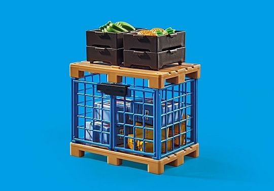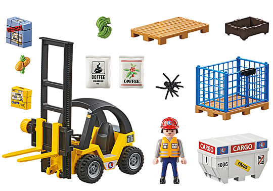 Speel in de haven met de Vorkheftruck met Lading van PLAYMOBIL. Help de havenwerker met het verplaatsen