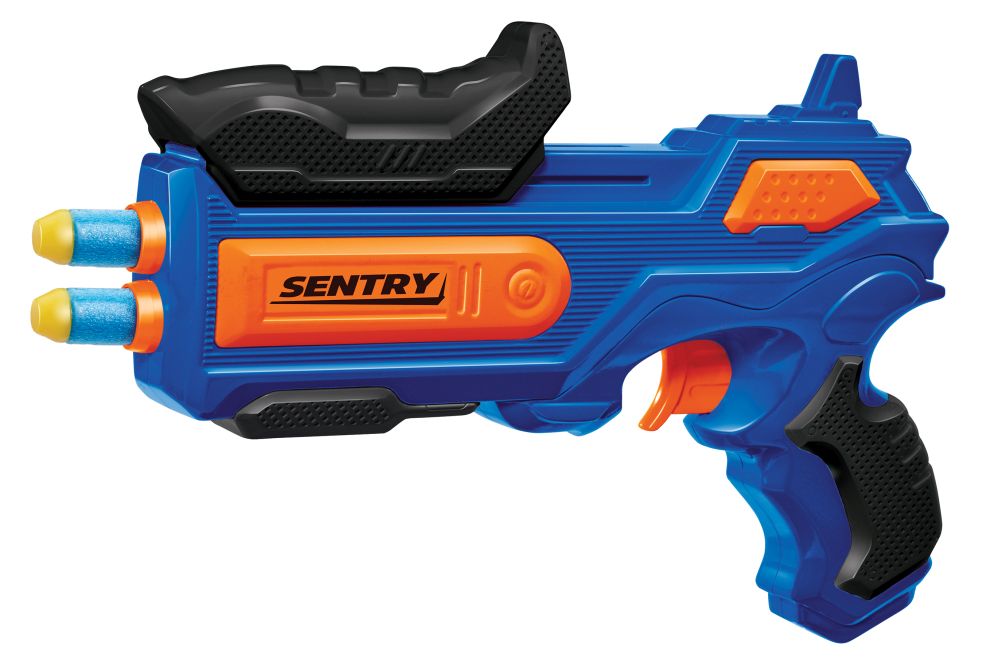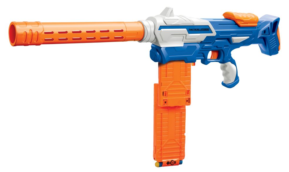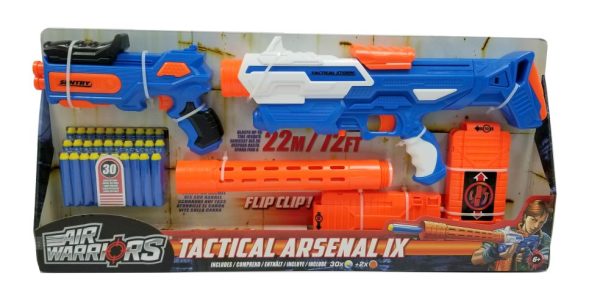 Met de BuzzBee Air Warriors Tactical Arsenal IX heb je 2 blasters in 1 verpakking! In de verpakking vind je een BuzzBee Eradicator en Sentry. De Eradicator is een blaster met magazijn en verlengstuk voor de loop. Er worden 2 magazijnen met een capaciteit