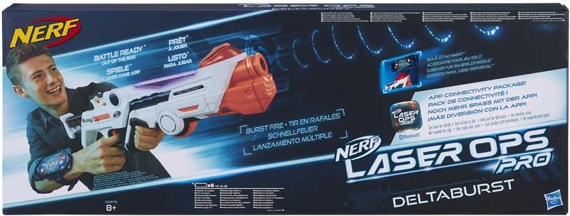 De Nerf Laser Ops DeltaBurst-blaster geeft spelers alles wat ze nodig hebben om tegenstand te bieden in live actie lasergevechten! De DeltaBurst-blaster vuurt een multi-shot infrarood blast af en registreert hits met licht en geluid, terwijl een LCD-scher