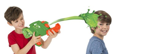 Met de pomp van het geweer kan je tot wel zeven meter ver schieten. Ook zit er een holster bij zodat je snel de blaster kunt herladen met slijm.