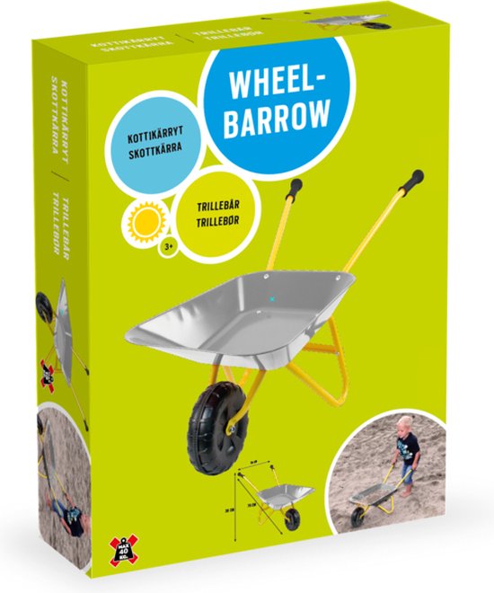 Kenmerken: Handgrepen platiek – Afmetingen kruiwagen: 36 x 76 x 38 cm. – Maximaal gewicht: 40 kg. – Aanbevolen leeftijd: vanaf 3 jaar.