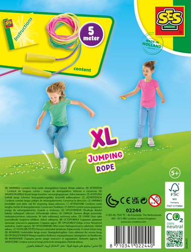 Springplezier voor iedereen met het XL Springtouw! Het”XL Springtouw” van SES is een must-have voor actieve kinderen die houden van buitenspelen. Met een lengte van maar liefst 5 meter is dit springtouw perfect voor grote groepen kinderen om samen te spelen en verschillende sprongtechnieken uit te proberen. Het vrolijke neon rainbow ontwerp maakt het springtouw extra opvallend en leuk om mee te spelen. Wat zit er in de doos? Springtouw van 5 meter in neon rainbow kleuren Waarom kiezen voor deze set? Lange lengte van 5 meter, perfect voor groepsspel Leuk neon rainbow ontwerp Stimuleert fysieke activiteit en coördinatie Geschikt voor kinderen vanaf 5 jaar Perfect voor buitenspelen en zomerse dagen Springen was nog nooit zo leuk! Met het XL Springtouw kunnen kinderen hun energie kwijt en tegelijkertijd hun coördinatie en fysieke vaardigheden verbeteren. De extra lengte van 5 meter maakt het mogelijk om met meerdere kinderen tegelijk te spelen, waardoor het perfect is voor scholen, speeltuinen of gewoon voor in de tuin. Het kleurrijke ontwerp voegt een extra element van plezier toe aan het spel, waardoor kinderen keer op keer terugkomen om te springen. Of je nu alleen speelt of samen met vrienden, dit springtouw biedt eindeloos speelplezier en is een geweldige manier om kinderen actief te houden. Het is stevig en duurzaam, zodat het lang meegaat, zelfs bij intensief gebruik. Begin vandaag nog met springen! Met het”XL Springtouw (5 meter)” kunnen kinderen genieten van urenlang springplezier. Pak het touw en ontdek hoe leuk buitenspelen kan zijn!