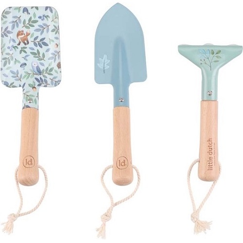 Ontdek de perfecte gereedschapsset v oor kleine tuiniers met deze prachtige tuinset uit de Forest Friends collectie! De set bestaat uit twee schepjes en een hark, allemaal gemaakt van stevig metaal met houten handvatten voor een comfortabele grip. Elk stuk is versierd met mooie illustraties en kleuren uit de collectie, perfect passend bij de avonturen van je kleintje in de tuin. Met de handige koordjes kun je het gereedschap makkelijk ophangen na het tuinieren. Perfect voor kleine handjes.
