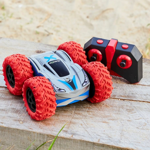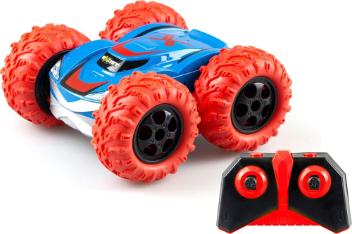 De nieuwe Exost RC 360 Cross met zijn rode banden kan 360 graden spinnen, een flip maken en op twee kanten rijden. Bestuur deze stuntauto eenvoudig met de controller. De grote, ultra duurzame banden kunnen met gemak alle ondergronden aan! De RC 360 Cross is voorzien van twee verschillende body designs. Snelheid: 12 km/h Schaal: 1:18. Bereik: 25 meter. Afmeting verpakking: 28x10x26 cm (lxbxh). Batterij informatie:
