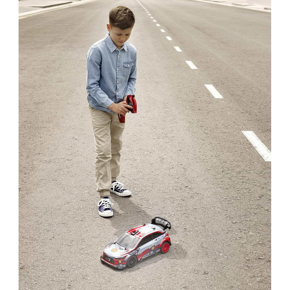 NINCORACERS Hyundai i20 Coupé op afstand bestuurbare auto met een gelicenseerde carrosserie van het WRC Wereldkampioenschap. Betrouwbare RC kit 2.4GHz, Li-Ion batterij 3.6V 500 mAh. Het model bereikt een snelheid van 20 km.