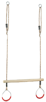 Trapeze hout (Ø 3,5x58cm) met ringen metaal (Ø 12cm)