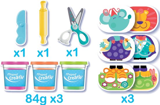 Mijn eerste boetseer set – maak eenvoudig vormen van klei en maak grappige figuren – maak veel plezier met een muis en een leeuw – compleet met toebehoren – het koffertje is herbruikbaar