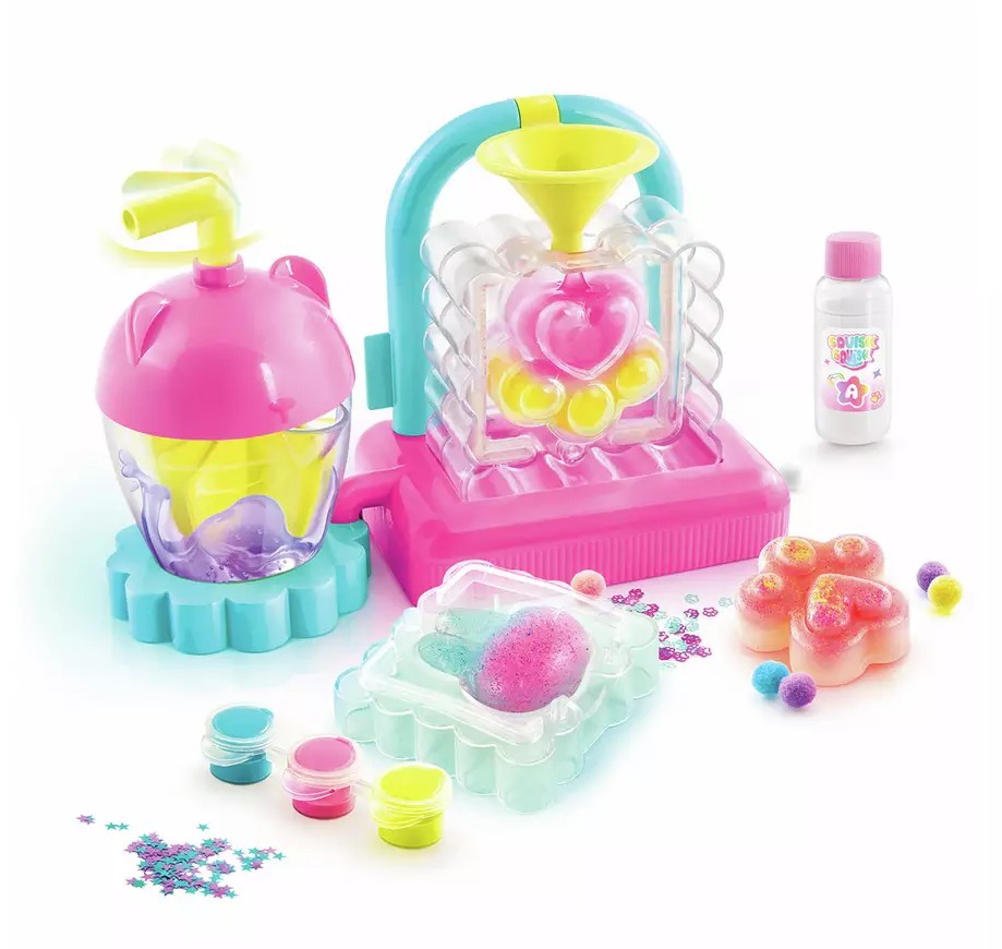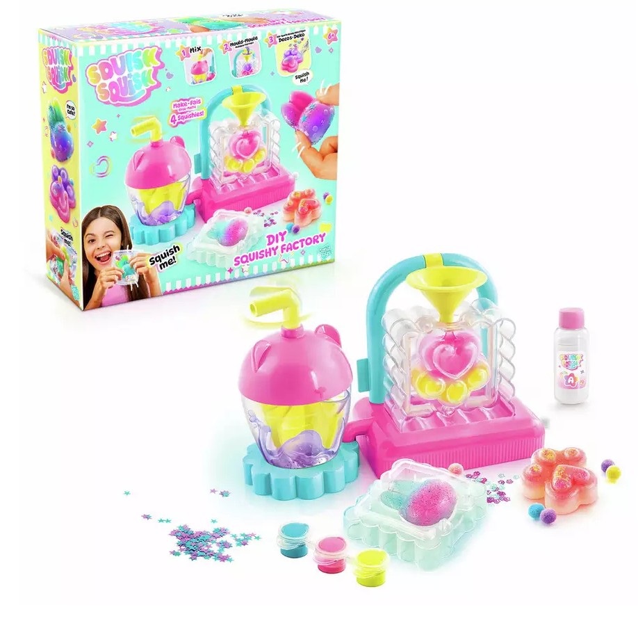 Maak je eigen zachte, kleurrijke squishies met de DIY Squishy Factory. Giet de twee gels in de mixer, voeg je favoriete kleuren toe en vul de vormpjes. Nadat het is opgedroogd, voeg je glitterdecoraties toe om je eigen unieke squishy te creëren. Stop hem in het zakje en knijp en druk erop, zo bevredigend! Een leuke, praktische ervaring voor kinderen die graag hun eigen ontwerpen maken! Inclusief een fabriek, vormpjes, kleuren, squishymix en tal van decoraties om verschillende unieke creaties te maken.