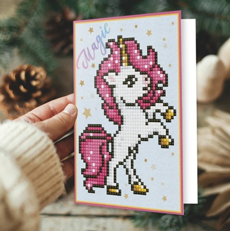 Verras iemand met een vleugje magie met de Diamond Dotz Magic wenskaart, versierd met een dartelende roze eenhoorn en glinsterende sterren. Perfect voor verjaardagen, bedankjes of gewoon een magische groet. Dit beginnersvriendelijke project maakt deel uit van de Diamond Painting Kits voor Volwassenen collectie en is een geweldige manier om kennis te maken met de wereld van Diamond Art. Laat je boodschap stralen met deze schitterende wenskaarten die tegelijkertijd een prachtig aandenken zijn.