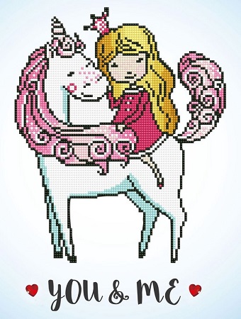You & Me van Diamond Dotz is een hartverwarmend eenhoornontwerp met een blond meisje dat een lachende eenhoorn knuffelt, versierd met roze krullen en hartjes. De cartoonachtige stijl en liefdevolle pose maken het een ideaal project voor beginners tot gevorderden. Met ronde diamantjes en een gedeeltelijke dekking zorgt het voor een lieflijke glinstering die zowel kinderen als volwassenen aanspreekt. Perfect voor diamond painting kits voor volwassenen en kinderen. Inclusief: eenhoorn diamond painting.