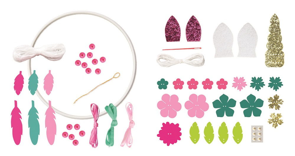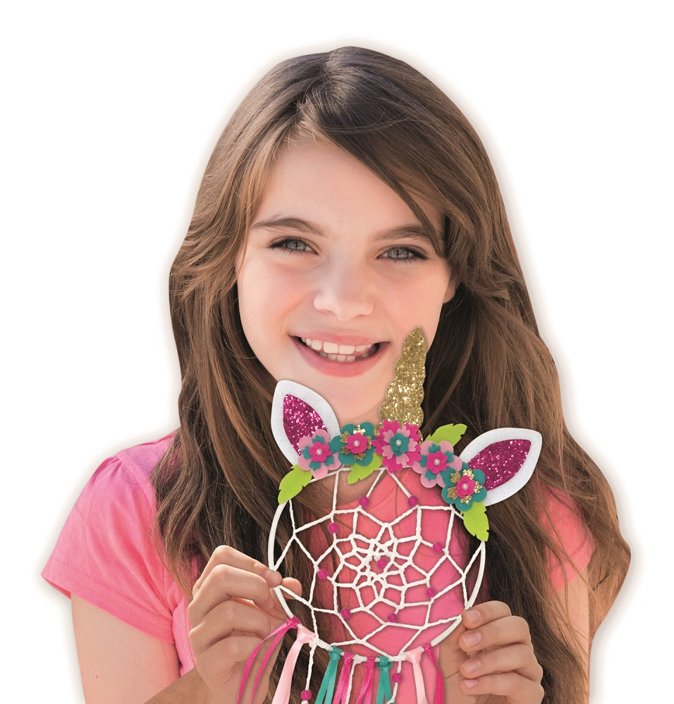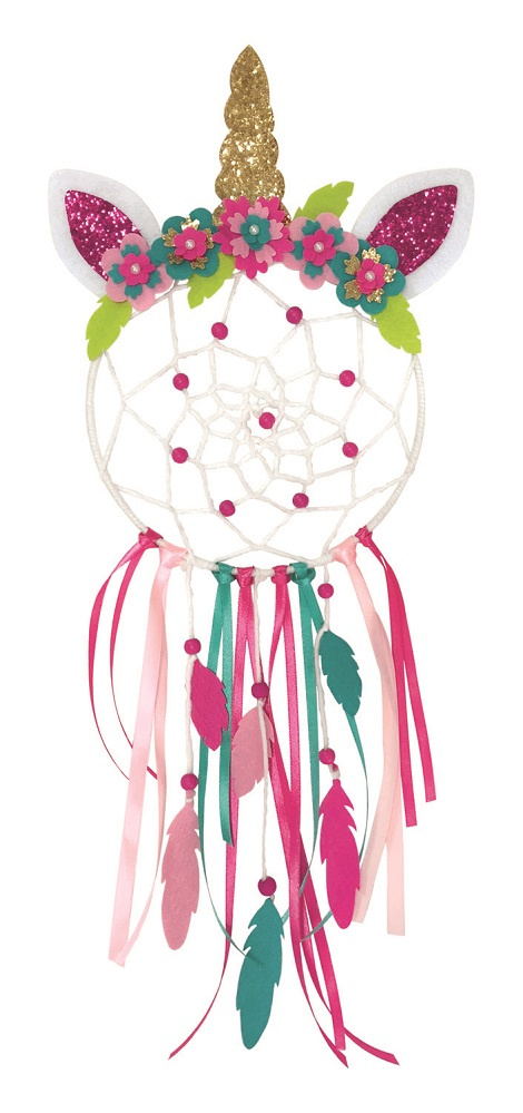 Maak je eigen dromenvanger. Deze set bevat: – Een plastic ring – Gekleurde wol – Satijnen linten – Parels – Naald en garen – Vilten delen voor decoratie Gedetailleerd gekleurde instructies inbegrepen. Geschikt voor kinderen vanaf 6 jaar.