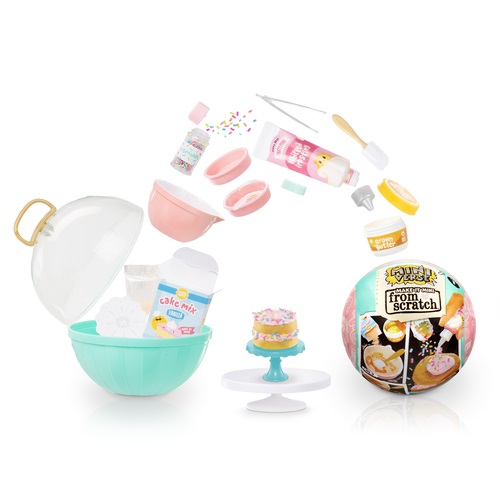 Elke bol bevat realistische mini-‘ingrediënten’ en -accessoires om je eigen miniaturen te maken van je favoriete bakwaren en toetjes ‘vanaf nul’! Elke verpakking is een VERRASSING, dus je weet pas na het uitpakken welke mini erin zit! Make It Mini from Scratch™ breidt je speelmogelijkheden uit met de magie van het bakken! Gebruik ‘basisingrediënten’ om te mengen, laagjes te maken en je zoete minitraktatie te creëren. Vergelijk je ingrediënten met de inbegrepen verzamelgids om te weten welke mini je hebt gekregen en volg de aanwijzingen van de ‘receptenkaart’ op de achterkant om je creatie te maken.