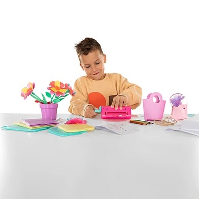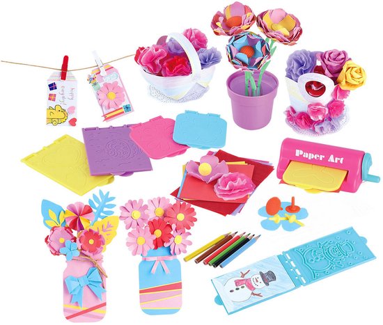 Met deze knutselset papier bloemen maken van Play ontdek je hoe leuk het is om je eigen papieren boeket te creëren! Het apparaatje helpt je om prachtige vormen in het papier te drukken, waarna je met de verschillende patronen en kleurrijke vellen de mooiste bloemen samenstelt.Laat je fantasie de vrije loop en maak een vrolijk boeket voor jezelf of om cadeau te geven. De set bevat alles wat je nodig hebt om direct aan de slag te gaan.