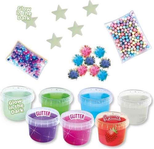 – Inclusief speciale slijm met geur, glow in the dark of glitters