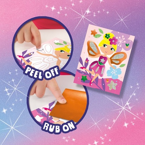 Met deze glinsterende knutselset maken kinderen vanaf 5 jaar zelf de mooiste sprookjesfiguren. Door stukjes folie op de stickerkaarten te wrijven, ontstaan kleurrijke, fonkelende kunstwerkjes waar ze direct trots op kunnen zijn.