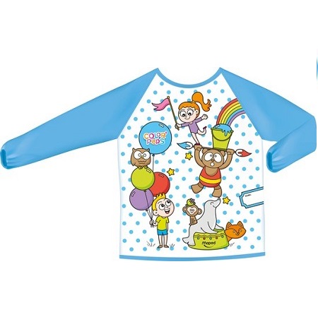 Verfschort met lange, elastische mouwen. Sluit met klittenband op de rug. Soepel en waterbestendig materiaal. Eenvoudig te reinigen. Voor kinderen van 82 tot 110 cm.