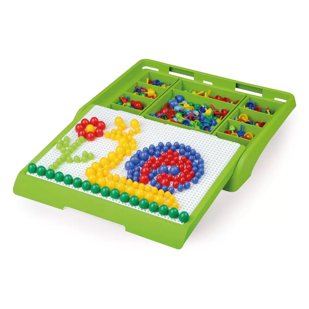 De Lena Mozaïekkofferset 400 Color is een kleurrijk steekspel voor kinderen vanaf 3 jaar. Met 300 stekkers van 10 mm en 100 steekpennen van 15 mm in blauw, groen, geel en rood kunnen kinderen eindeloos variëren met hun eigen mozaïekmotieven. De stevige op