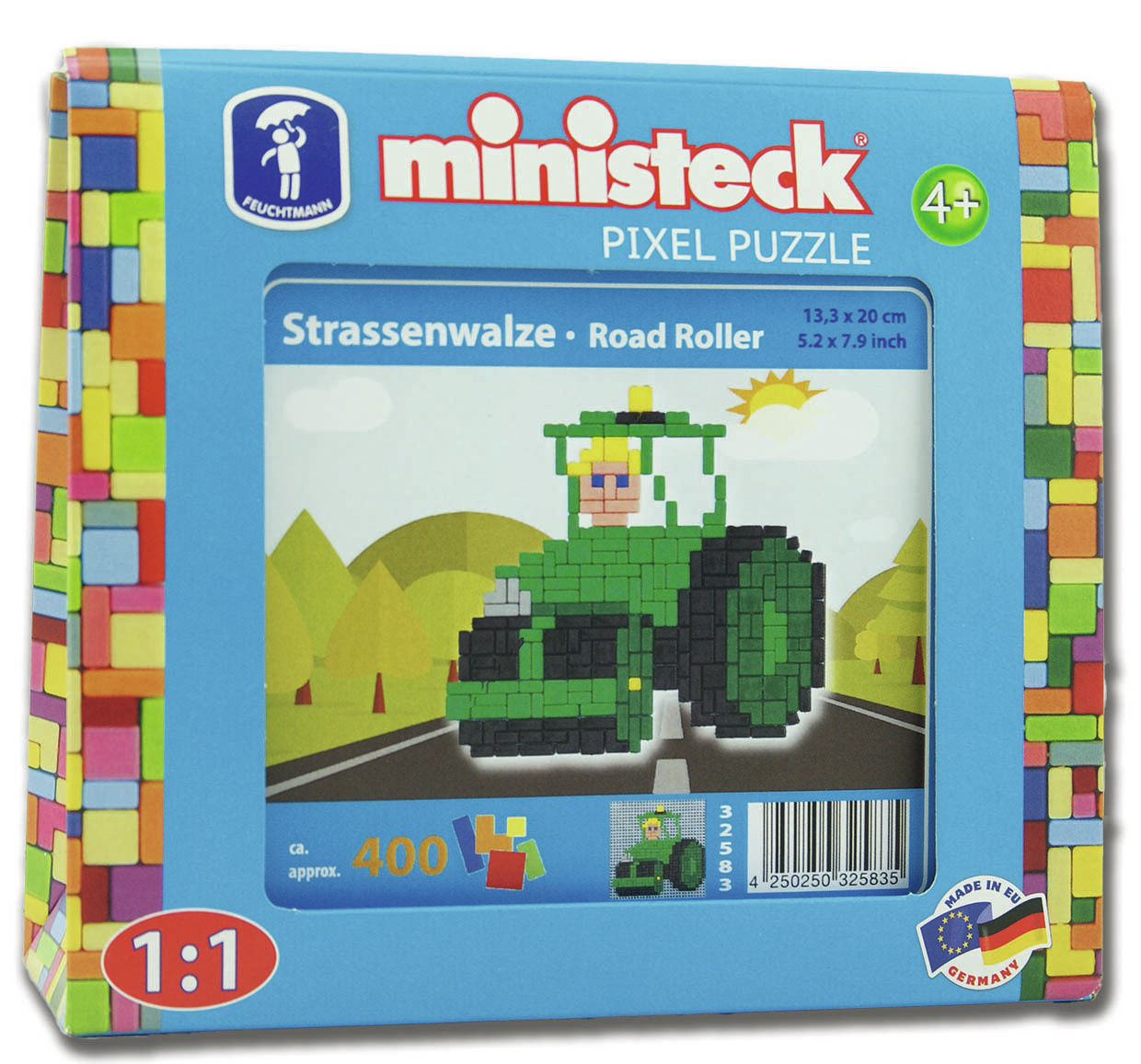 Ministeck Road Roller – Small Box – 400pcs Afmeting grondplaat: 13,3 x 13,3cm Ministeck voorziet al sinds 1950 jong en oud van creatief vermaak. Met keer op keer nieuwe sjablonen kan je jezelf telkens weer uitdagen met een nieuw ontwerp. Of je nu