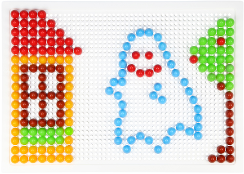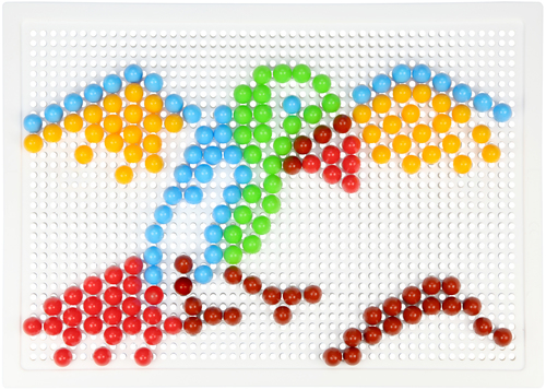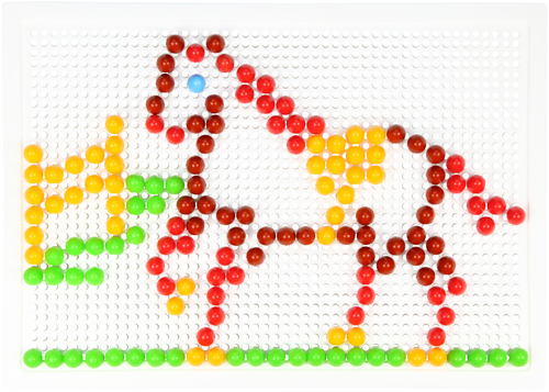 Bestaat uit 200 kleurrijke pluggen van 10 mm incl. Opbergtas en insteekplaat: 28 x 19,5 cm.
