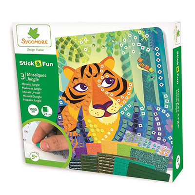 Sycomore mozaïek knutselset jungle voor kinderen vanaf 5 jaarMet deze mozaïek knutselset van Sycomore duik je in de kleurrijke jungle! Kinderen vanaf 5 jaar beleven uren creatief plezier terwijl ze hun eigen jungle-avonturen tot leven brengen met vrolijke mozaïekstickers. Het stevige karton en de levendige kleuren zorgen ervoor dat elk kunstwerk een echte eyecatcher wordt.De Stick’N Fun mozaïekset bevat drie verschillende tekeningen die je helemaal zelf mag versieren. Plak de mozaïekjes op de juiste plek en zie hoe de jungle tot leven komt! Ideaal voor regenachtige middagen, kinderfeestjes of gewoon als creatieve uitdaging tussendoor.Extra informatie Creatieve mozaïek knutselset met junglethema Bevat drie tekeningen om te versieren Geschikt voor kinderen vanaf 5 jaar Gemaakt van stevig karton en kleurrijke stickers.
