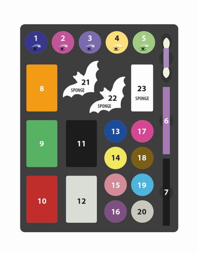 Deze set bevat een make-uppalet voor een echte Monster High-look. Het palet bevat gezichtspoeders, oogschaduw, body crayons, een applicator en sponsjes. Geschikt voor kinderen vanaf 6 jaar.