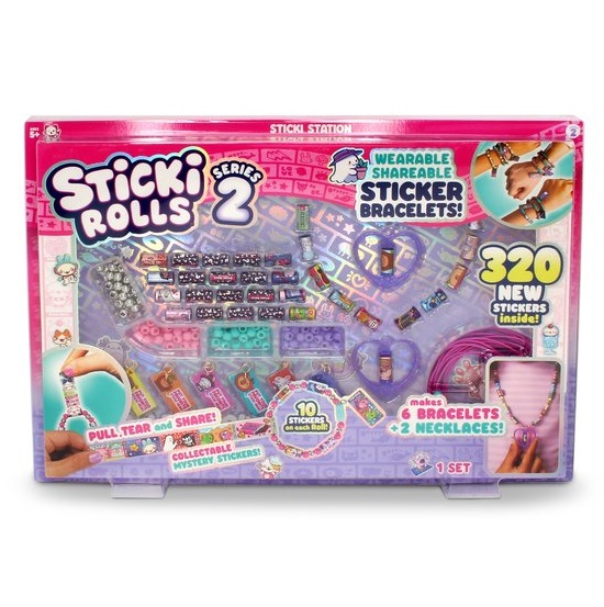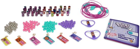 • Maakbare sieraden: bouw tot 6 armbandjes en 2 kettingen met de 144 kleurrijke kralen, 2 Sticki‑hangertjes, 6 charm-tags én elastische koordjes