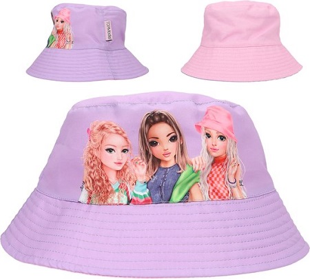 Goed gemutst met TOPModel! De draaibare hoed JOY in bucket style is aan de ene kant roze en aan de andere kant paars met een 3-model motief.
