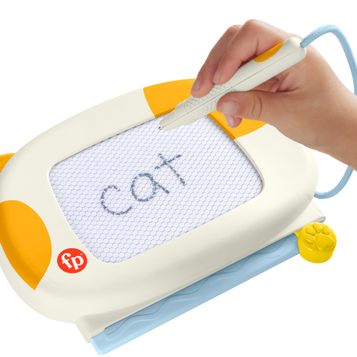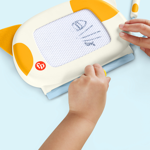 Kleuters kunnen hun creativiteit de vrije loop laten met dit schattige tekenbord met gele kattenoortjes van Fisher-Price. Het tekenbord is magnetisch en heeft een ‘staart’-pen waarmee ze kunnen tekenen, helemaal zonder knoeien. Als je kind klaar is met tekenen en/of schrijven, kan het de ‘halsband’ van de kat gebruiken om uit te gummen en opnieuw te beginnen. De oortjes zijn zacht en stimuleren de zintuigen, en het tekenbord zelf heeft een handzaam formaat, ideaal om mee te nemen op reis.