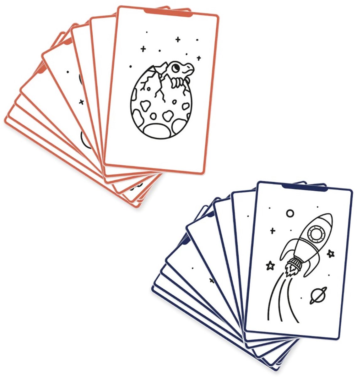 De kaarten zijn wit en voorzien van duidelijke contourlijnen, speciaal ontworpen om het tekenen makkelijker te maken voor jonge kinderen. Dankzij het stevige karton gaan ze lang mee, zelfs bij intensief gebruik. Zo stimuleer je spelenderwijs de creativiteit, fantasie en fijne motoriek van je kindje. Geschikt vanaf 4 jaar en ideaal voor zowel thuis als onderweg.