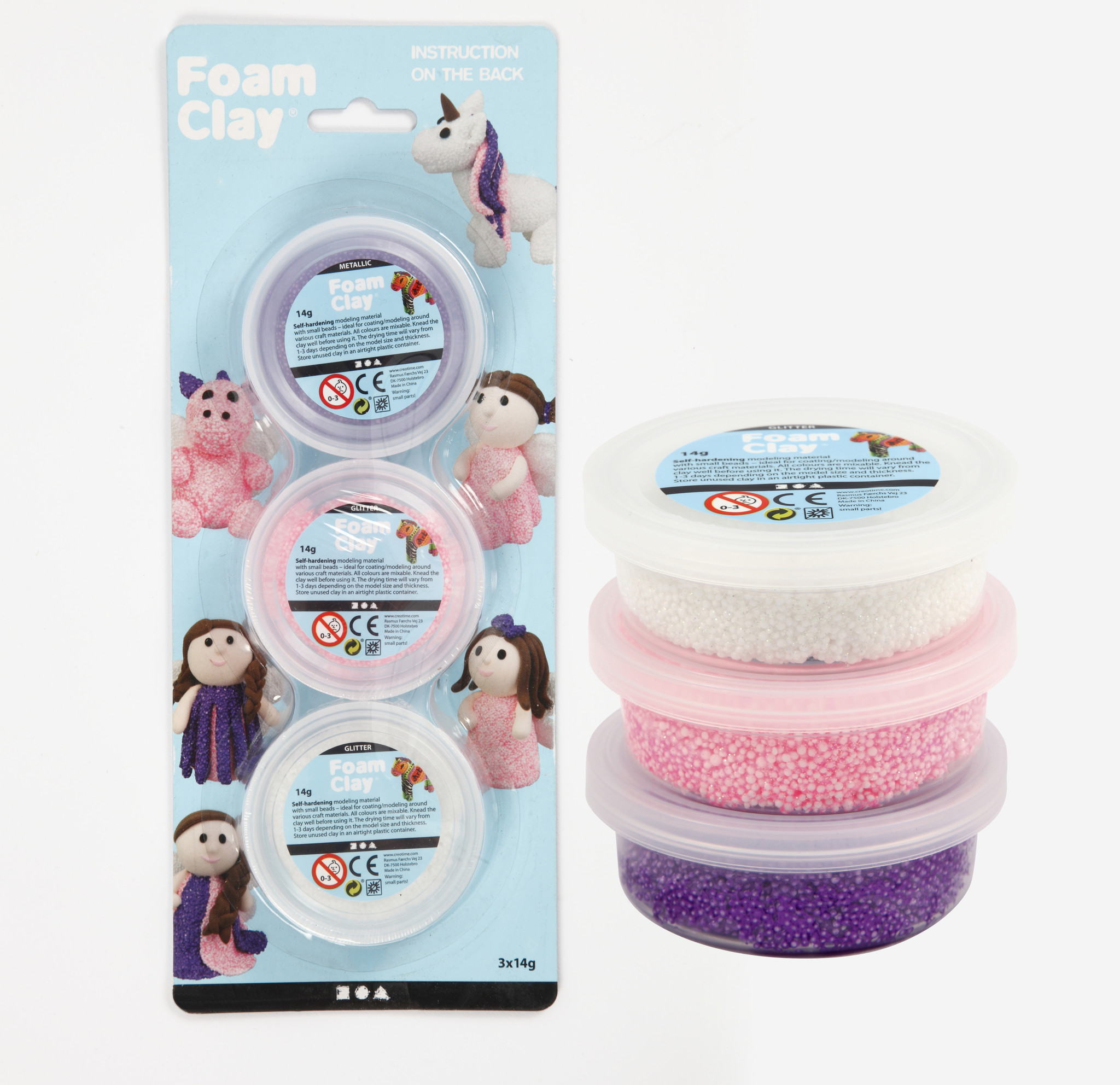 Foam Clay Set 3x14gr – paars (metallic)/wit (glitter)/roze (glitter)