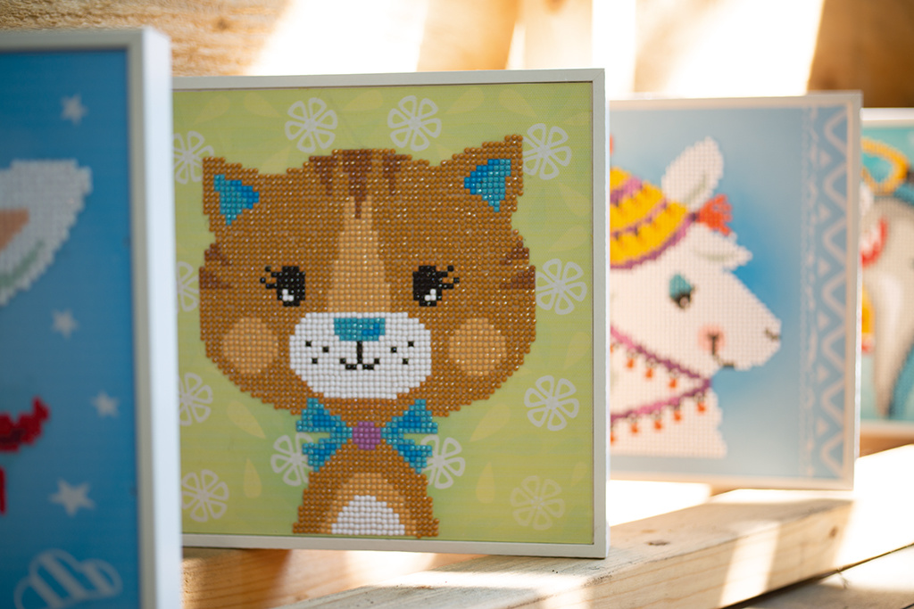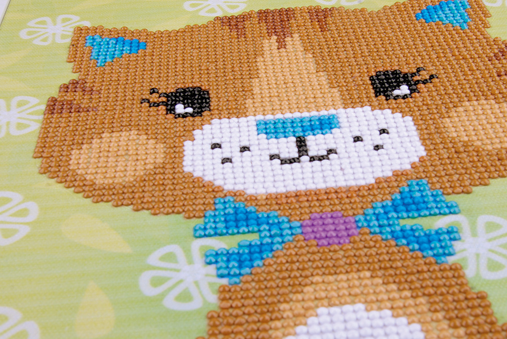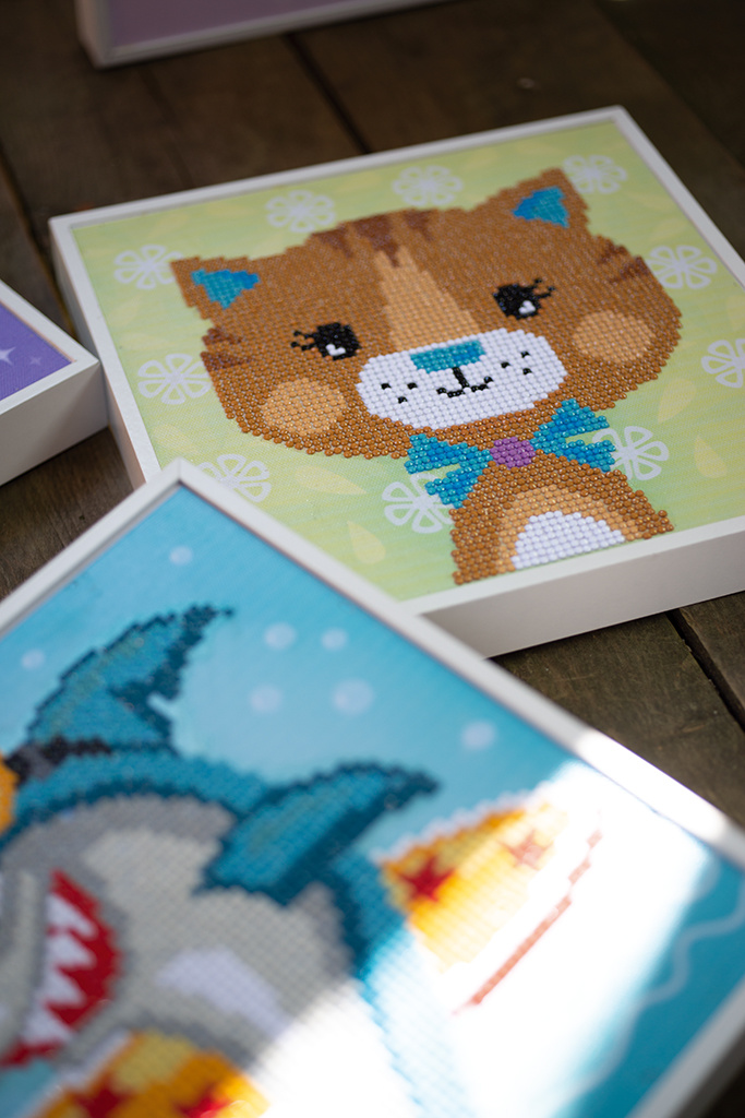 Diamond Painting Kit, Hoge kwaliteitsstof met kleurenopdruk, 100% polyester, Op kleur gesorteerde diamanten, Volledige werkwijze in 8 talen, Stylus pen, schaaltje, potje met was, Plastic zakjes voor het sorteren van de diamanten, Geschikt vanaf 6 jaar, Me