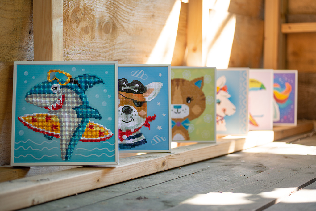 Diamond Painting Kit, Hoge kwaliteitsstof met kleurenopdruk, 100% polyester, Op kleur gesorteerde diamanten, Volledige werkwijze in 8 talen, Stylus pen, schaaltje, potje met was, Plastic zakjes voor het sorteren van de diamanten, Geschikt vanaf 6 jaar, Me