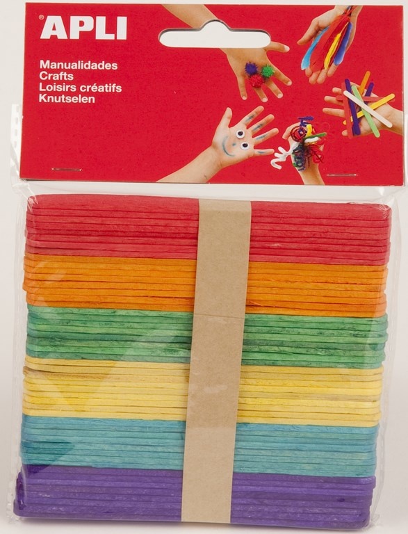 APLI Houten staafjes (gekleurd) 115x4mm – 50stuks