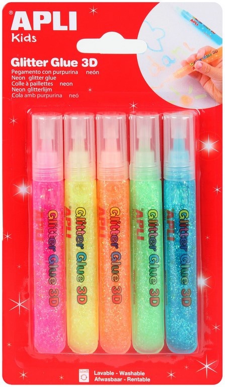 APLI Kids Glitterlijm “Fluo” 5 tubes x 13ml (paars/geel/oranje/groen/blauw)