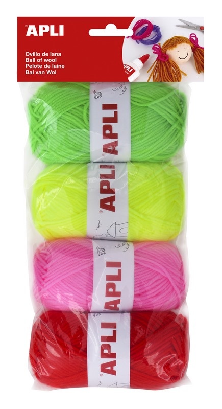 Apli Kids Wol 4x50gr - assorti fluo tinten