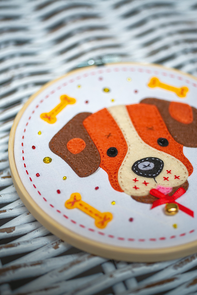 Knutselkit met vilt, Voorgedrukte stof: 100% katoen, Voorgesneden vilt: 100% polyester, Garen: 100% katoen, Werkwijze, Pareltjes, pailletten, 1 naald,1 houten flexihoop, Geschikt vanaf 12 jaar, ca. 15 x 15 cm / 6″ x 6″, Leeftijdscategorie: vanaf 12 jaar,