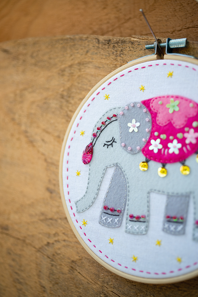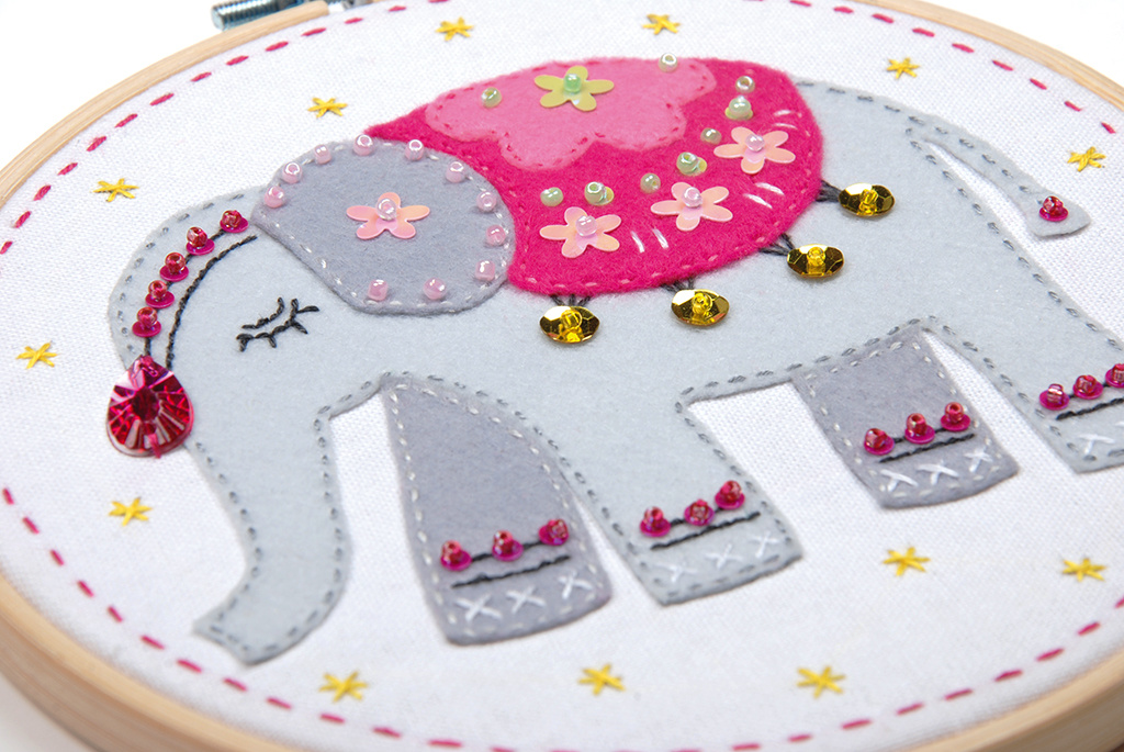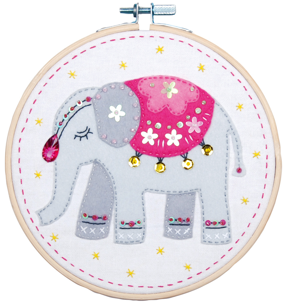 Knutselkit met vilt, Voorgedrukte stof: 100% katoen, Voorgesneden vilt: 100% polyester, Garen: 100% katoen, Werkwijze, Pareltjes, pailletten, 1 naald, 1 houten flexihoop uit bamboo, Geschikt vanaf 12 jaar, ca. 15 x 15 cm / 6″ x 6″, Leeftijdscategorie: van