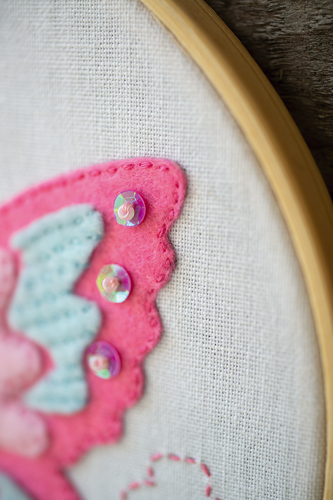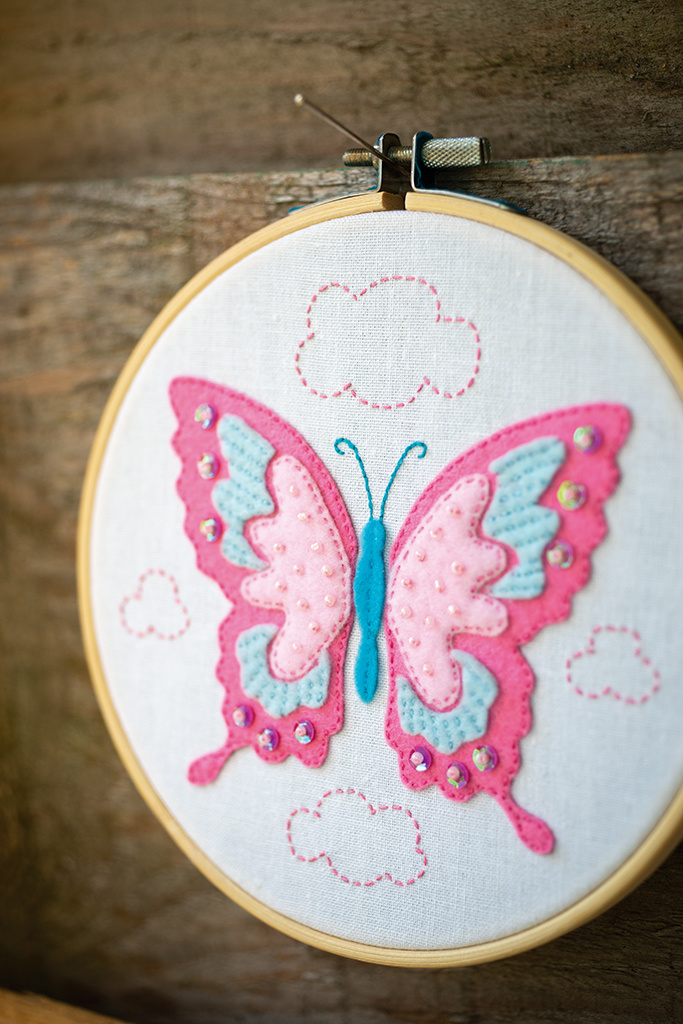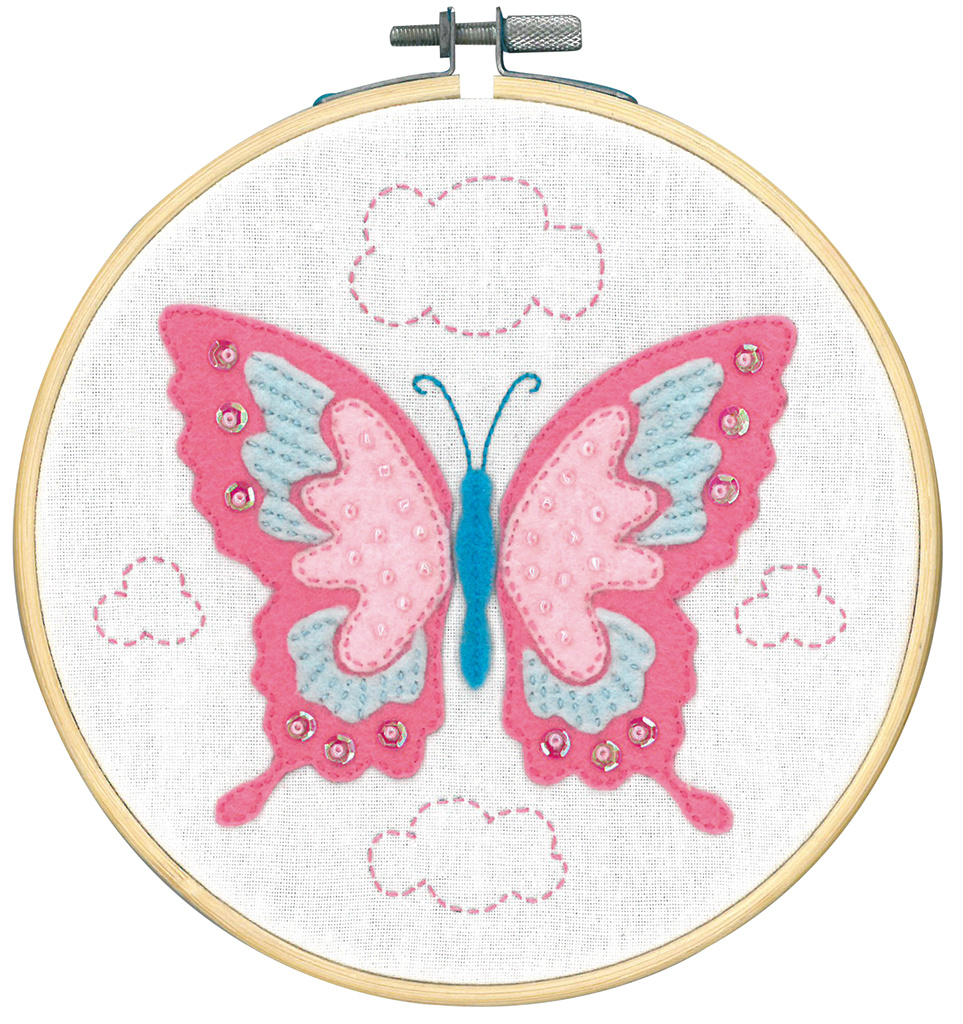 Knutselkit met vilt, Voorgedrukte stof: 100% katoen, Voorgesneden vilt: 100% polyester, Garen: 100% katoen, Werkwijze, Pareltjes, pailletten, 1 naald, 1 houten flexihoop uit bamboo, Geschikt vanaf 12 jaar, ca. 15 x 15 cm / 6″ x 6″, Leeftijdscategorie: van