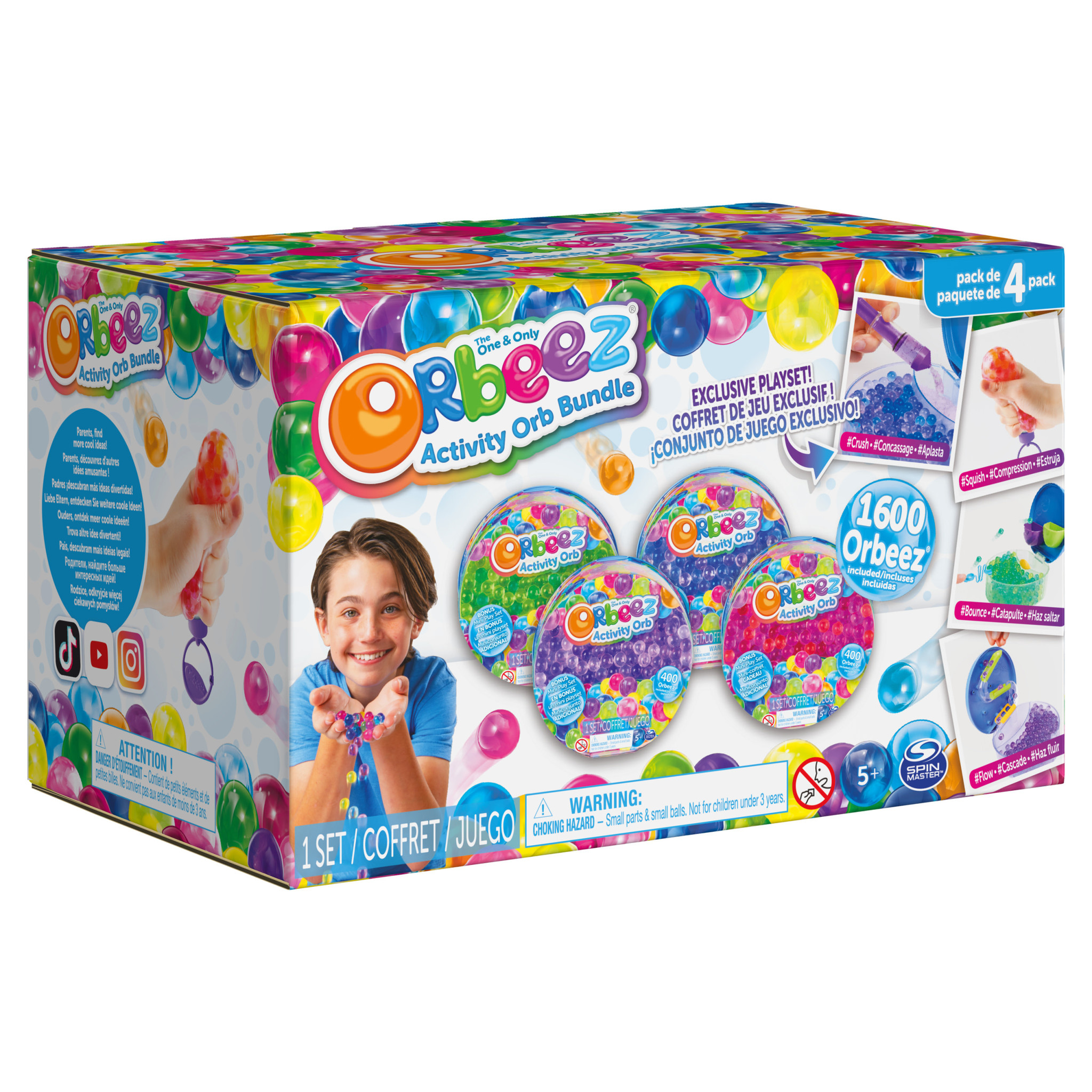 Introductie van een nieuwe toevoeging aan de Orbeez-rage, het Orbeez Activity Orb-bundelpakket. Pak je bundelpakket uit om vier mini-speelsets te onthullen: de Flow-, Bounce-, Squeeze- en Crush-speelsets. Elke activiteitsbol in de bundel wordt geleverd me