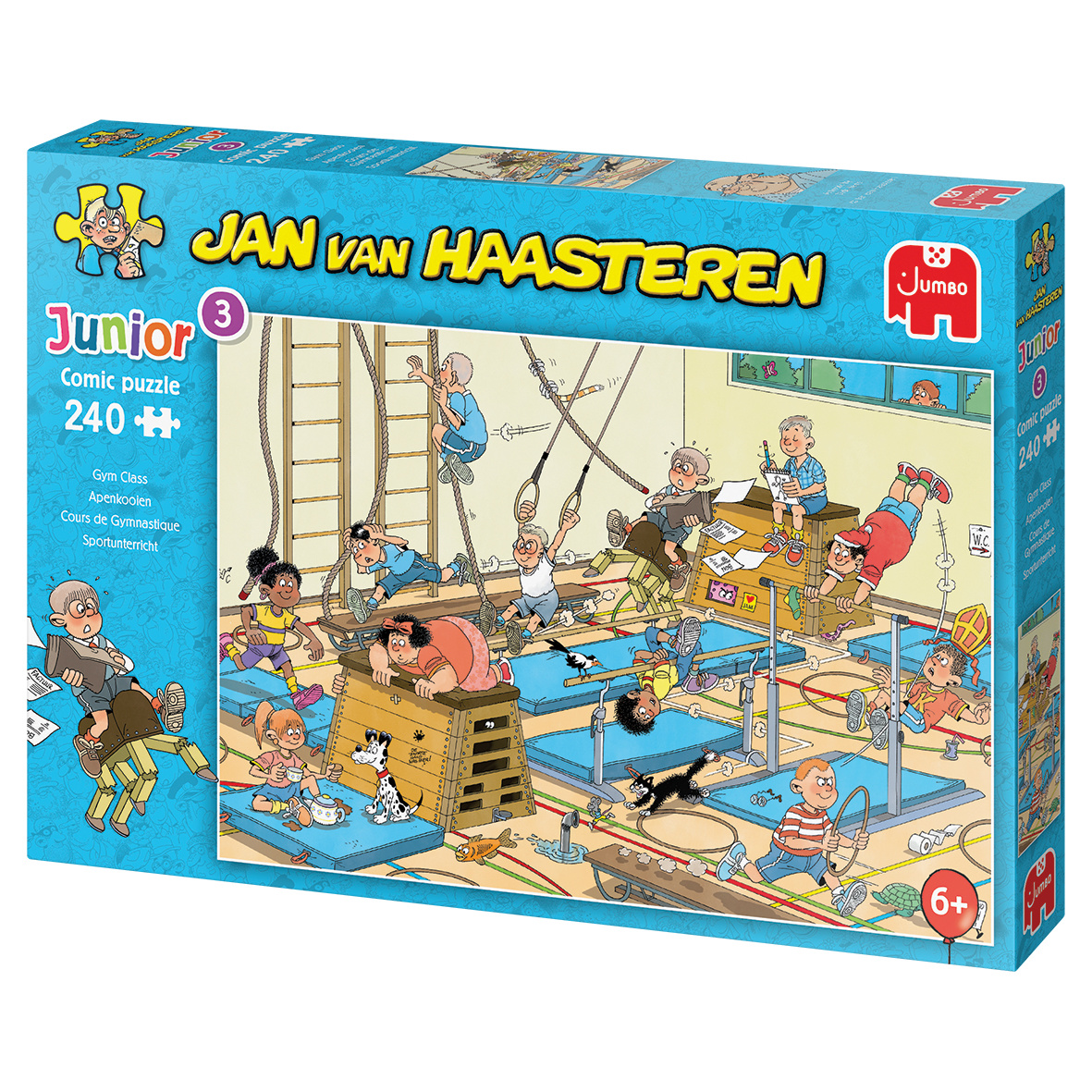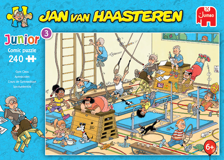 De vrienden van Jan van Haasteren spelen tikkertje in de gymles. Kunnen ze elkaar op de schouder tikken, of rennen en klimmen ze te snel? Deze humoristische puzzel van 240 stukjes is geschikt voor kinderen vanaf 6 jaar. Ontdek de nieuwe kinderpuzzels va
