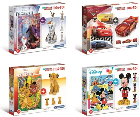 Puzzel (104stuks) + 3D figuur – Disney – 1 exemplaar