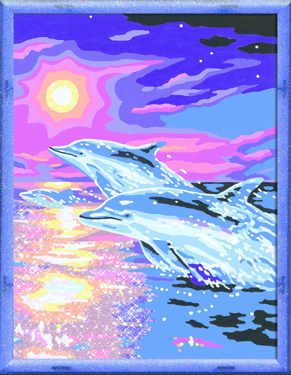 Schilderen op nummer – Dolfijnen in zonsondergang