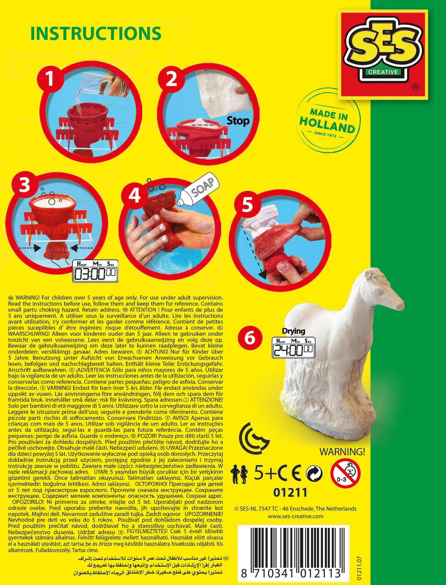 Maak de mooiste beeldwerkjes van gips met SES Creative. Met deze set maak je een mooi paard van gips dat je vervolgens met de bijgeleverde verf beschildert.
