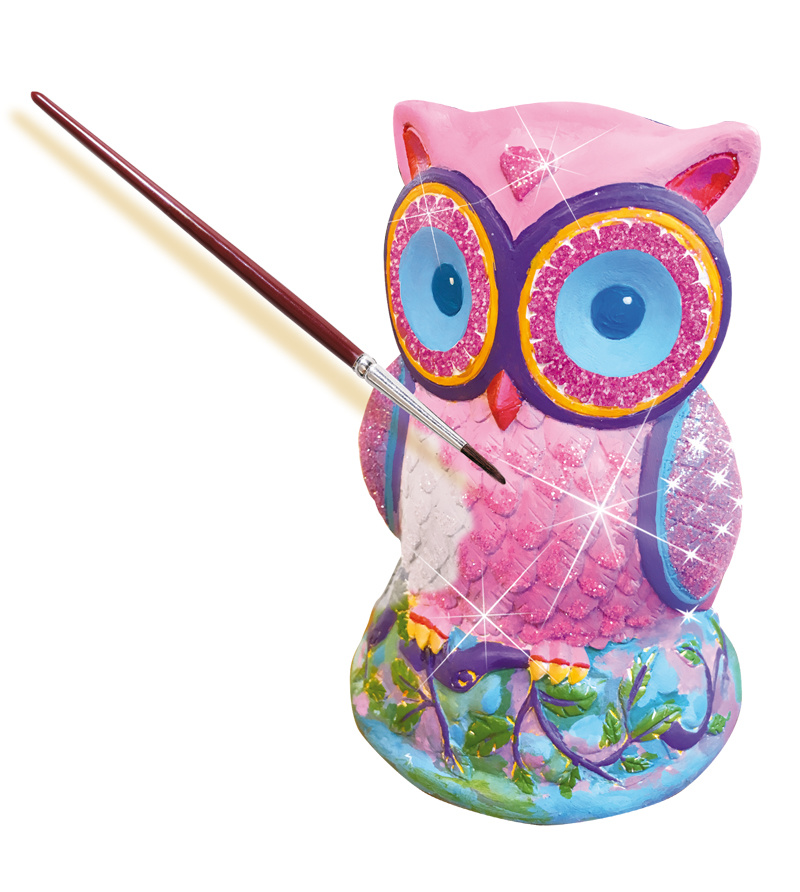Vind jij uilen ook zo leuk? Met dit creatieve pakket van SES maak je ze nu van gips. Giet het gips in de 3D mal. Laat het beeldje drogen en beschilder je uil met de bijgeleverde verf. De glitters maken hem helemaal af. Leuk om te doen en een super resulta