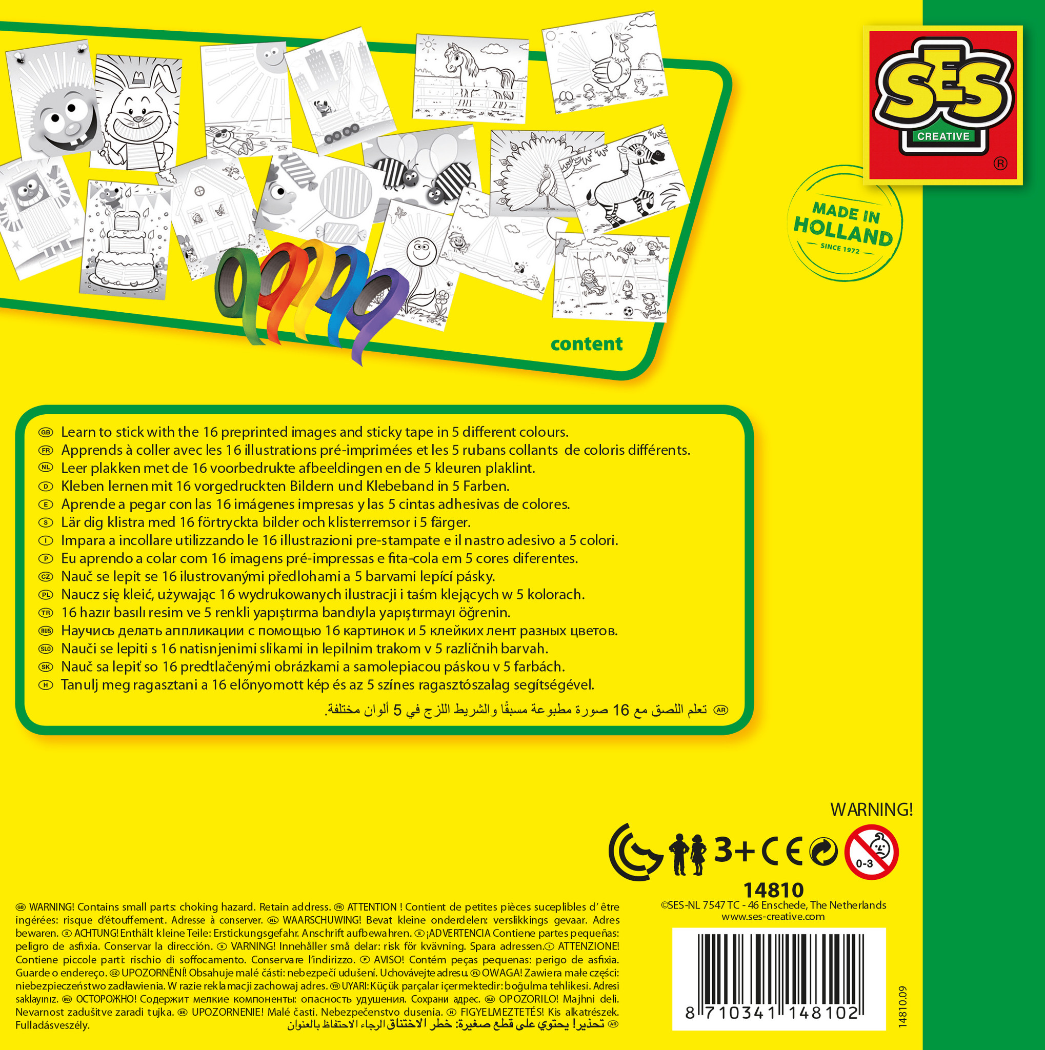 Op de voorbedrukte kaarten ga je met deze gekleurde plaktape mooie kleuren aanbrengen. Je kunt je creativiteit de vrije loop geven of netjes de voorbeelden volgen. De keuze is aan jou. Met de producten van SES Creative ontwikkel je op een leuke en veilig