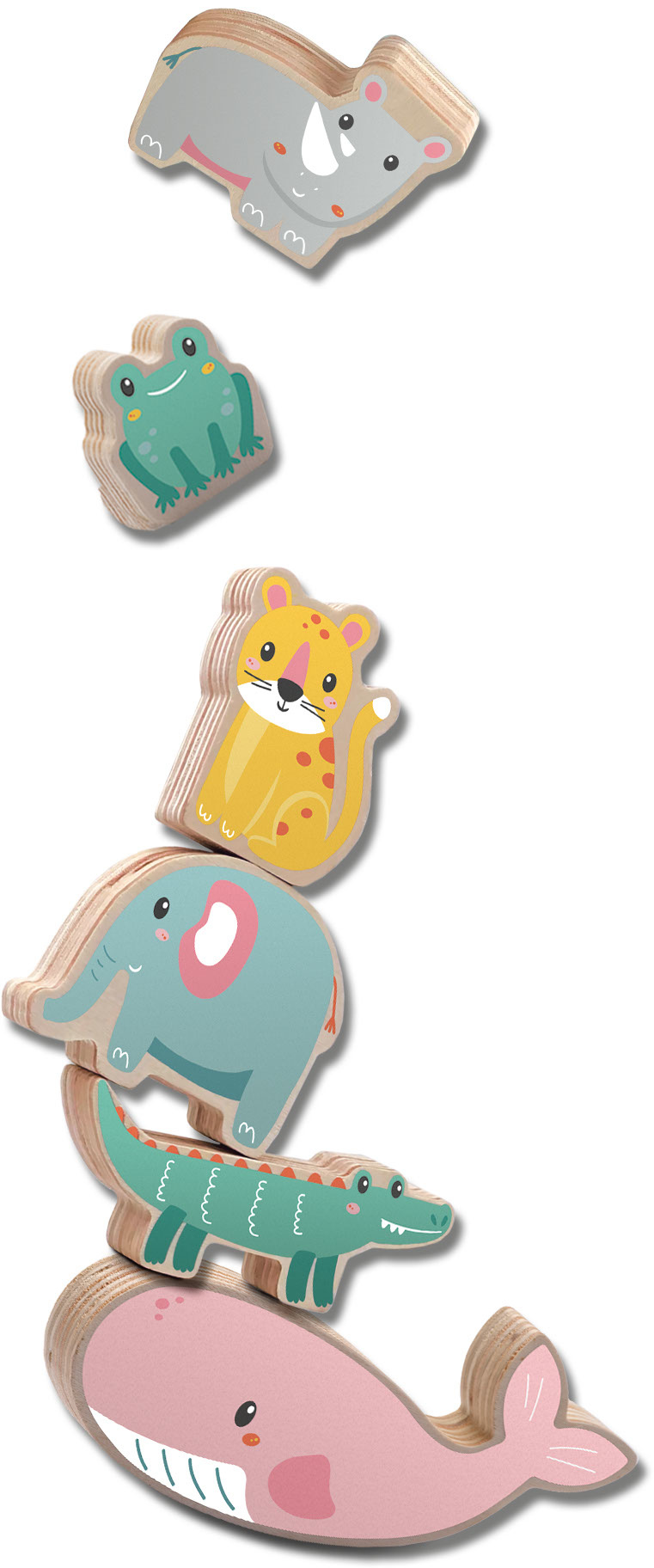 Probeer de dieren op elkaar te stapelen. Dat kan nog best spanend zijn, omdat de blokken wel in balans moeten blijven staan. Pas op dat de vrolijke figuren niet omvallen! We hebben alvast een aantal voorbeelden meegeleverd om na te maken. In de voorbeelde