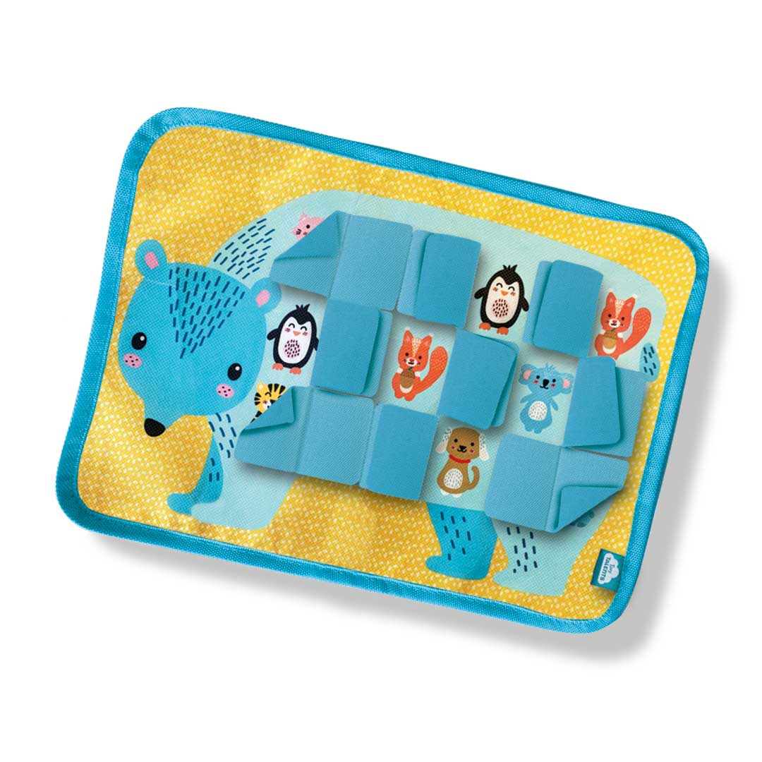 Kiekeboe! Heb jij twee dezelfde dieren ontdekt? We hebben 18 dieren verstopt, waarvan er telkens twee dezelfde te vinden zijn. Lukt het jou om de negen dieren combinaties te vinden? De mat is gemaakt van textiel met zachte flapjes van vilt. Doordat er gee